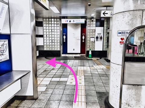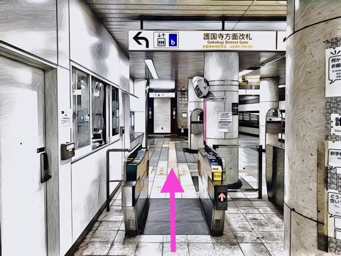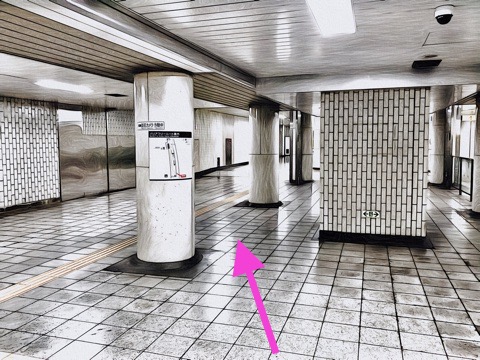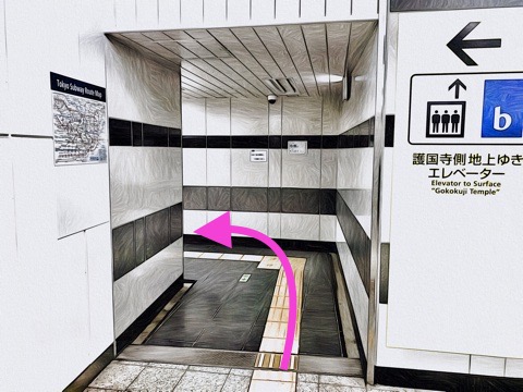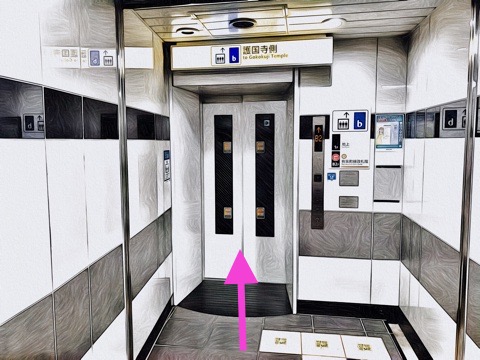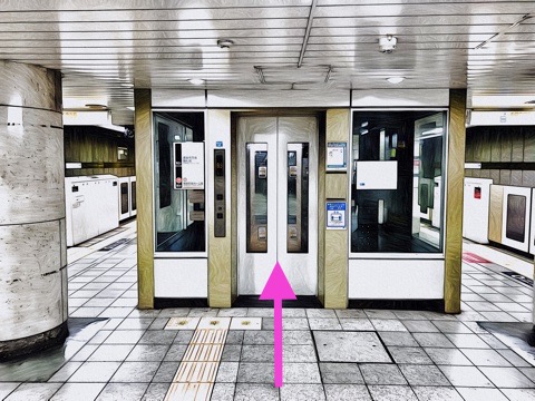 1号車4番扉(先頭から10両目)付近のエレベーターで改札階へ