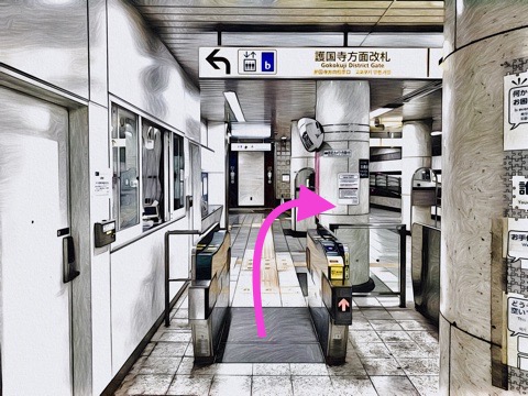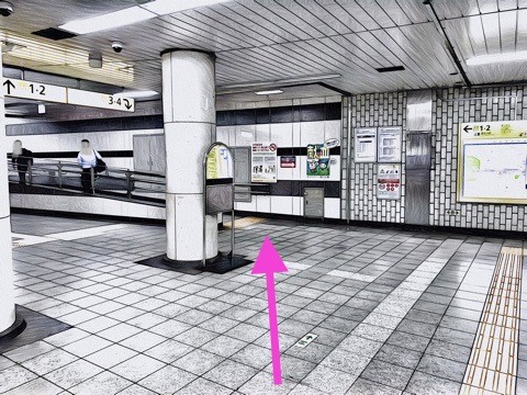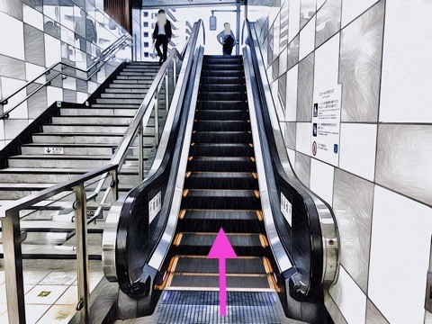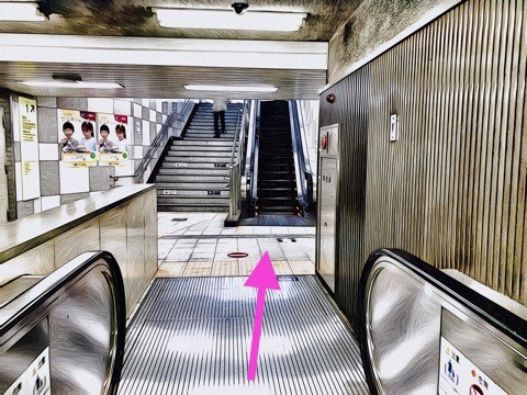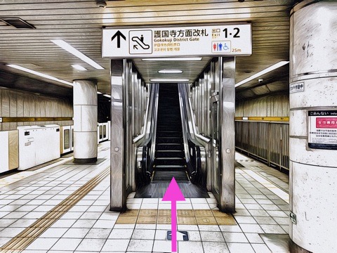 2号車1番扉(先頭から2両目)付近のエスカレーターで改札階へ