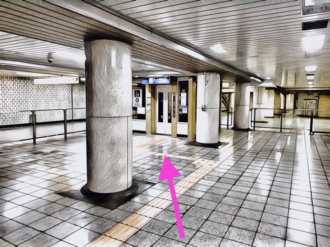 左の1番線が新木場方面行きホーム(1号車4番扉/先頭から10両目)