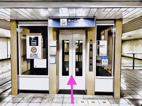 エレベーターでホーム階へ