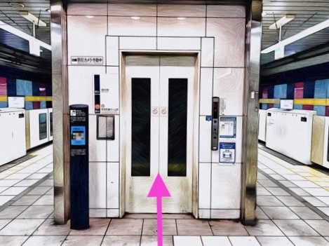 4号車2番扉(先頭から4両目)付近のエレベーターで改札階へ