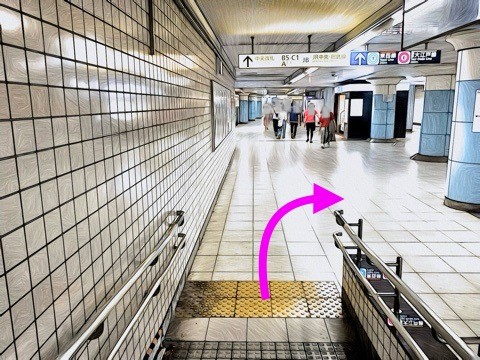 1号車4番扉(先頭から10両目)付近のエレベーターで上の階へ