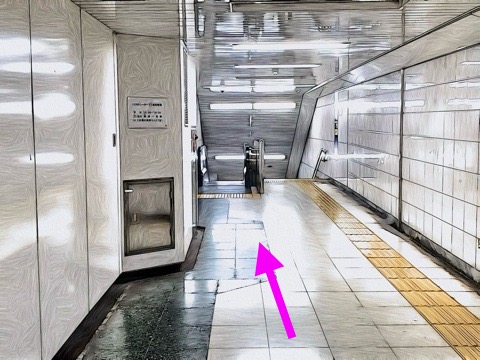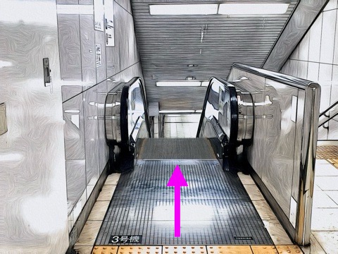 3号車3番扉(先頭から8両目)付近のエスカレーターへ