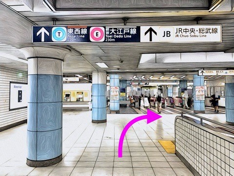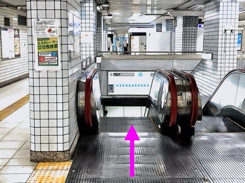 3号車3番扉(先頭から3両目)付近のエスカレーターへ