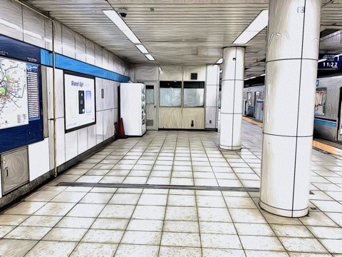 1番線が西船橋方面行きホーム(8号車4番扉/先頭から8両目)