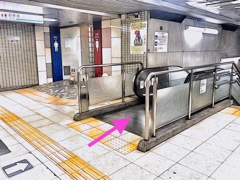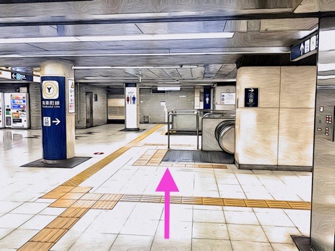 エスカレーターで東京メトロ有楽町線ホーム階へ