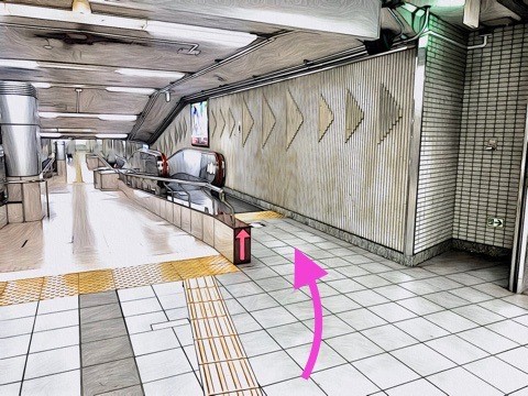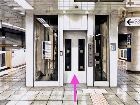 10号車1番扉(先頭から10両目)付近のエレベーターでB3Fへ
