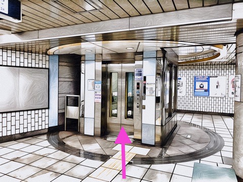 左前方にあるエレベーターで地下1階へ