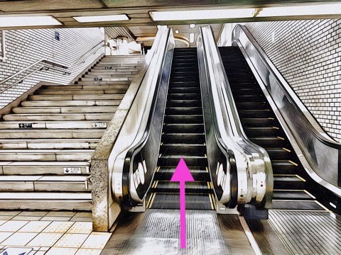 エスカレーターで改札階へ