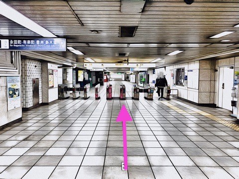 前方の改札へ