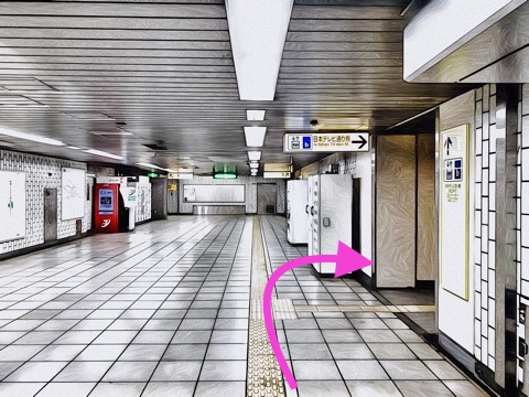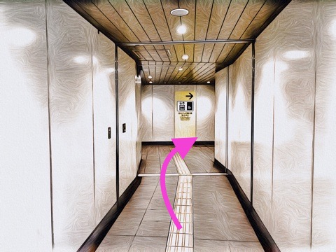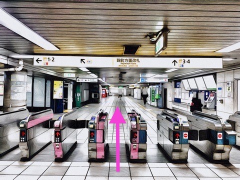 9号車4番扉(先頭から2両目)付近のエスカレーターへ