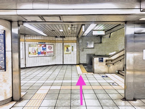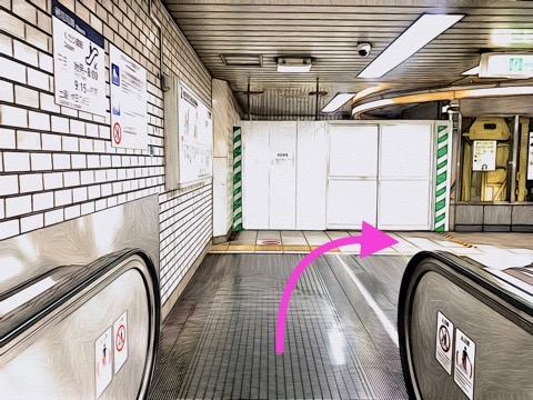 9号車3番扉(先頭から9両目)付近のエスカレーターへ