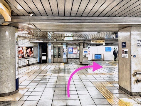 エスカレーターを降り左前方にあるエレベーター通路へ