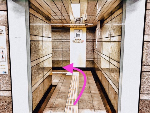 エレベーターを降り左へ
