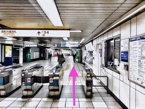 10号車4番扉(先頭から10両目)付近のエレベーターへ