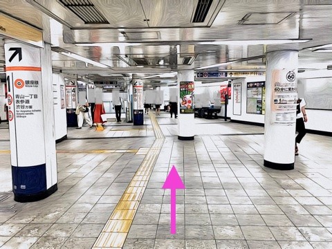 1番線が渋谷方面行きホーム(1号車1番扉/先頭から1両目)