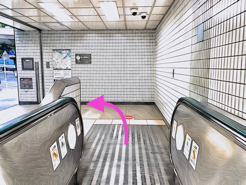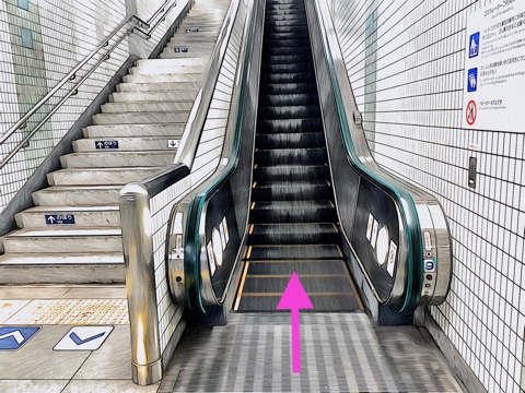 前方のエスカレーターへ