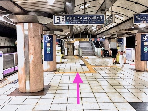 2号車1番扉(先頭から9両目) 付近のエレベーターで上の階(B3F)へ