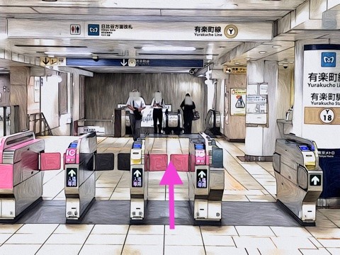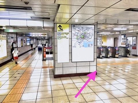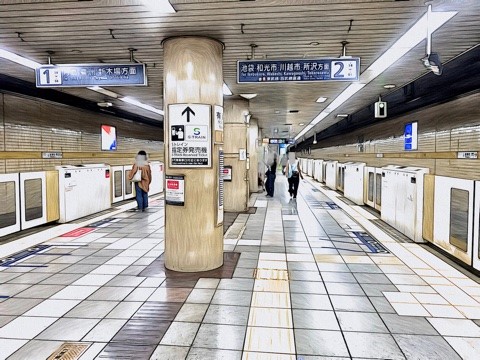 1番線が新木場方面行きホーム(1号車1番扉/先頭から10両目)