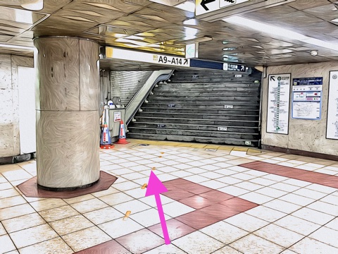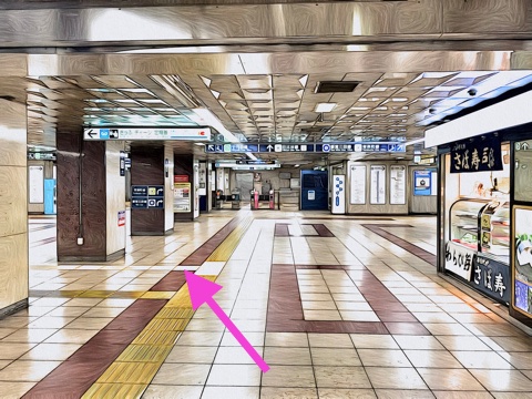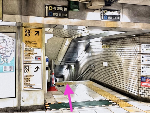 1番線が新木場方面行きホーム(5号車1番扉/先頭から6両目)