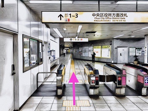 前方の改札へ