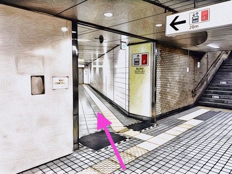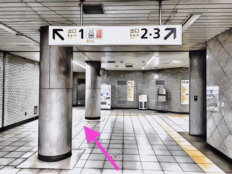 7号車2番扉(先頭から7両目)付近のエスカレーターへ