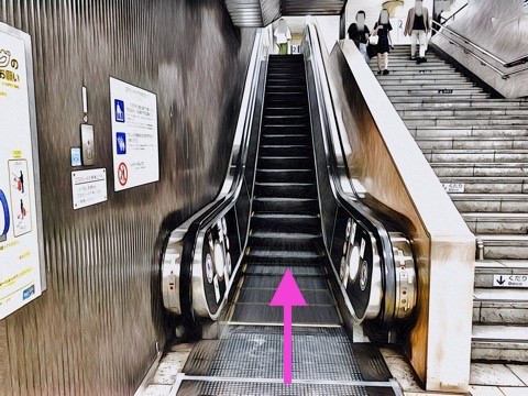 エスカレーターで改札階へ