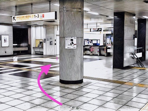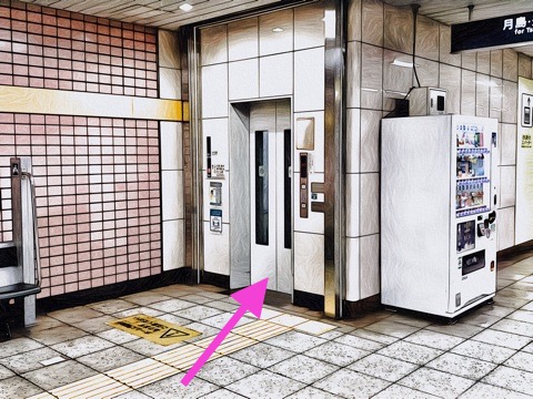 エレベーターを左前方の改札へ