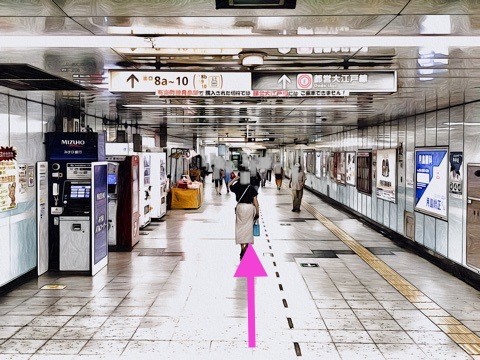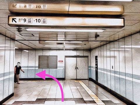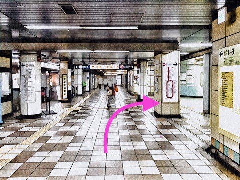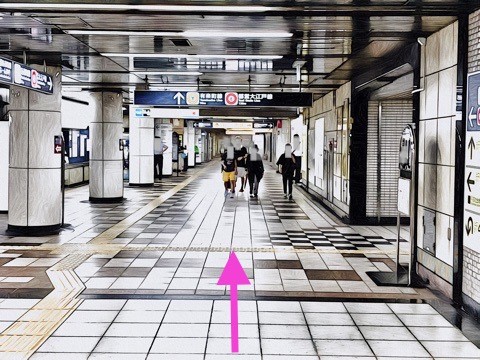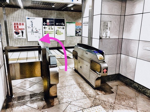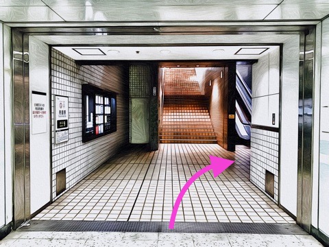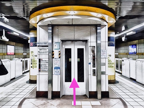 3号車4番扉(先頭から8両目)付近のエレベーターで改札階へ