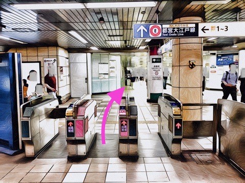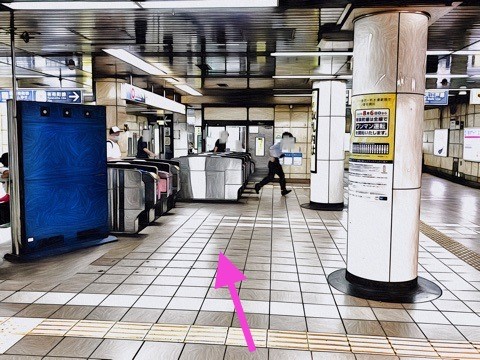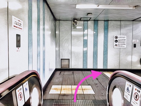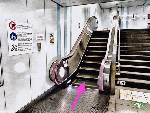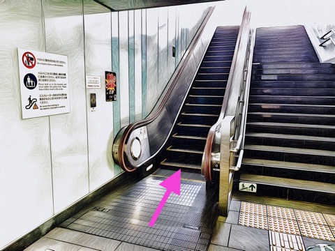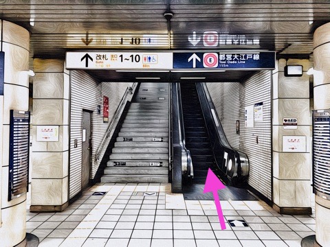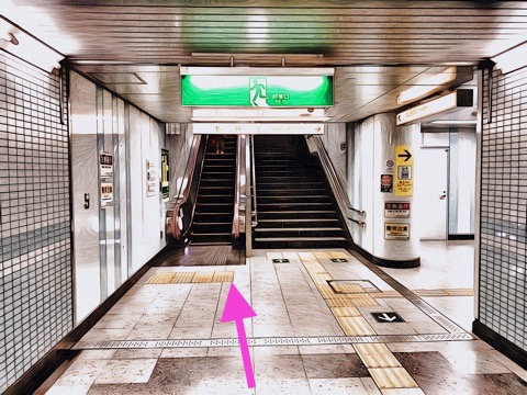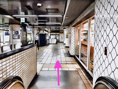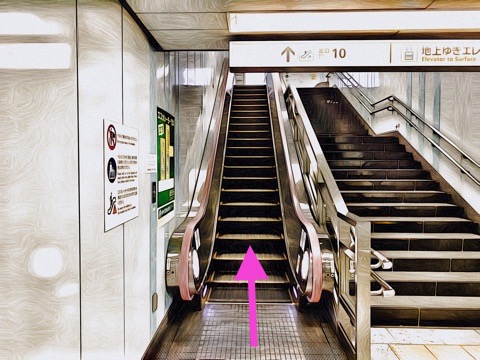 9号車1番扉(先頭から9両目)付近のエスカレーターで改札階へ