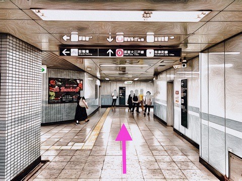 右前方にある改札へ