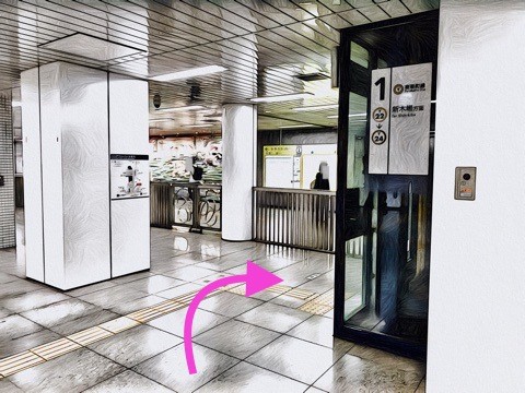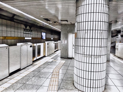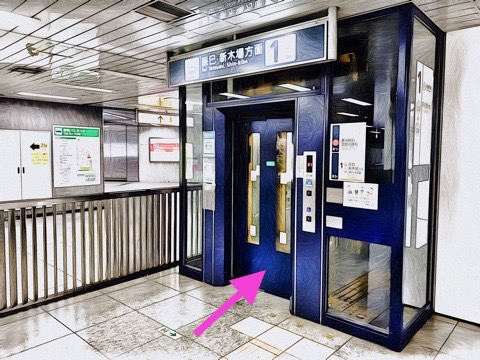 1番線が新木場方面行きホーム(8号車4番扉/先頭から3両目)