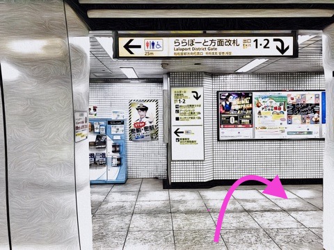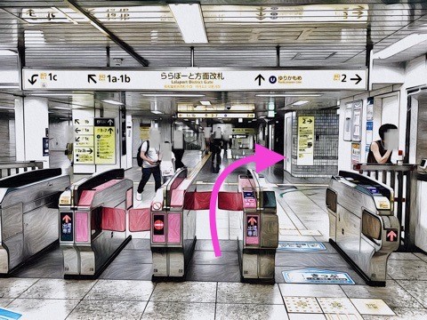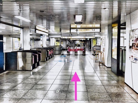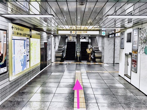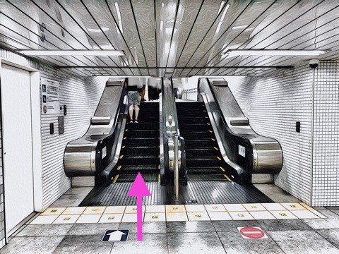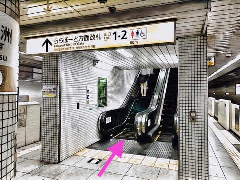 5号車1番扉(先頭から6両目)付近のエスカレーターで改札階へ