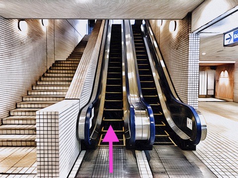8号車1番扉(先頭から3両目)付近のエスカレーターで改札階へ