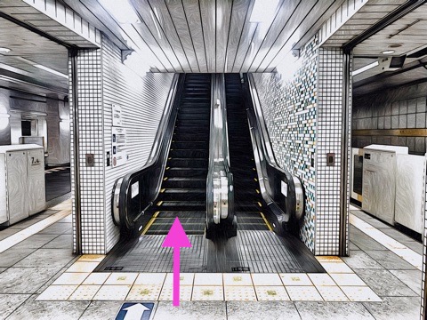 前方のエスカレーターへ