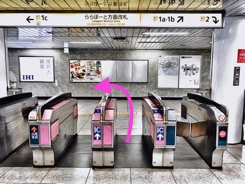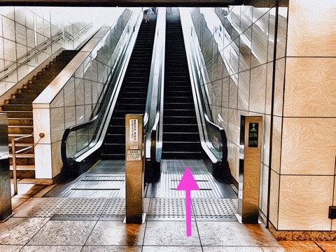 5号車1番扉(先頭から5両目)付近のエスカレーターで改札階へ