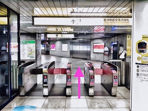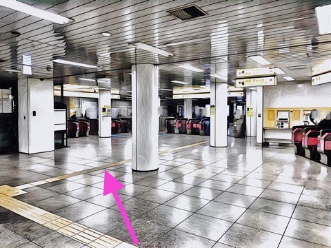 8号車1番扉(先頭から8両目)付近のエスカレーターで改札階へ