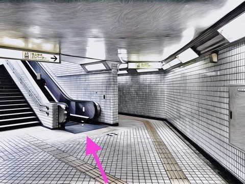 8号車1番扉(先頭から8両目)付近のエスカレーターで改札階へ