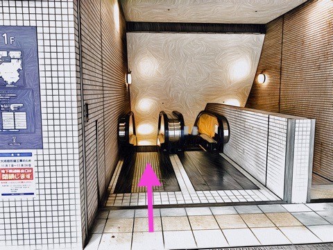 出入口6bのエスカレーターへ