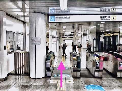 改札を入り前方へ