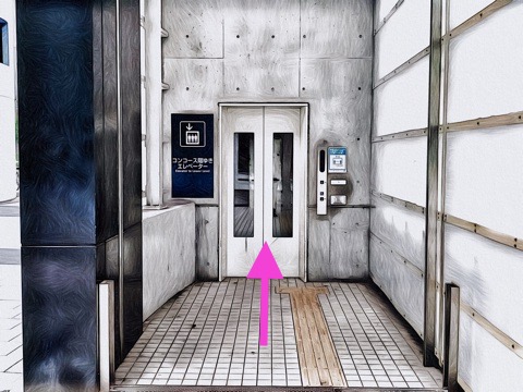 出入口7のエレベーターへ