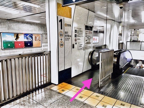 エスカレーターでホーム階へ
