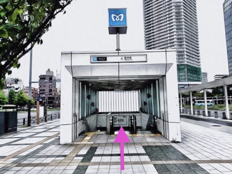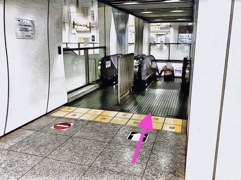 出入口2aのエスカレーターで下の階へ