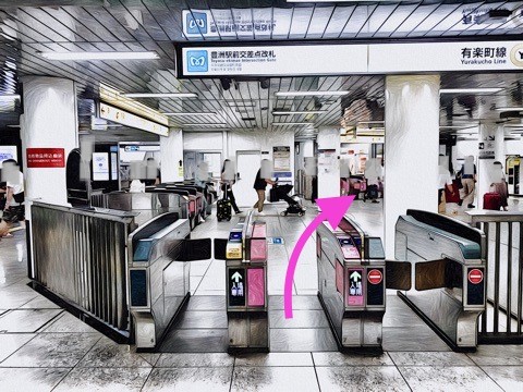 エレベーターを降り前方の改札へ