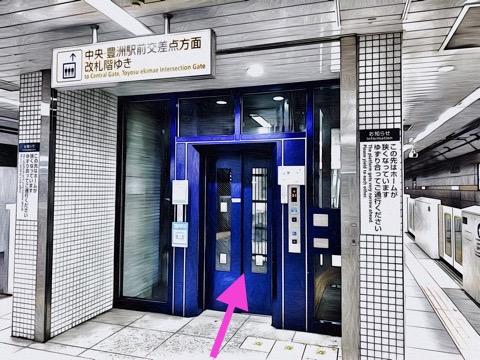 8号車4番扉(先頭から3両目)付近のエレベーターで改札階へ