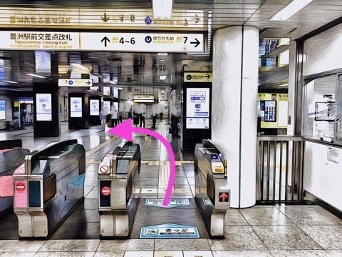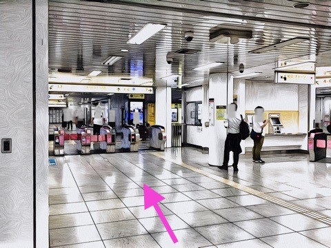 前方の改札へ