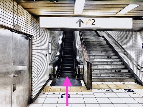 前方のエスカレーターへ
