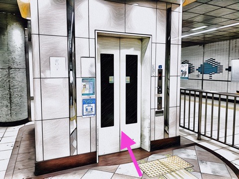 出入口1のエレベーターへ