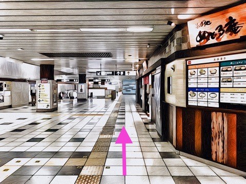 前方の改札へ