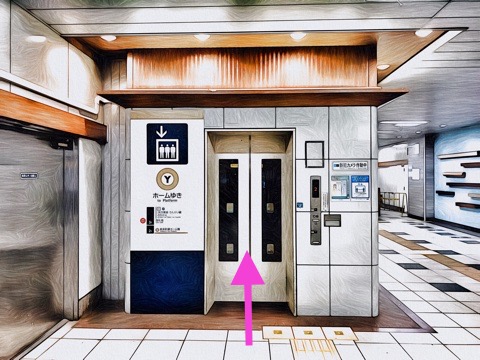 エレベーターでホーム階へ